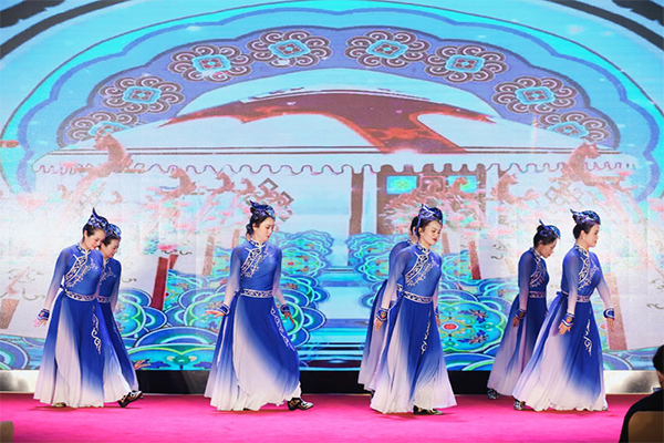 接下來是舞蹈《蒙族舞-藍色的風(fēng)》,這個節(jié)目是2022年湖北省省運會健身舞蹈類項目孝感代表隊參賽獲獎作品之一,我們行政部謝主任也是孝感代表隊隊員之一。我們邀請到了部分參賽隊員,她們是來自孝高、實小的老師們和舞蹈協(xié)會的老師們。